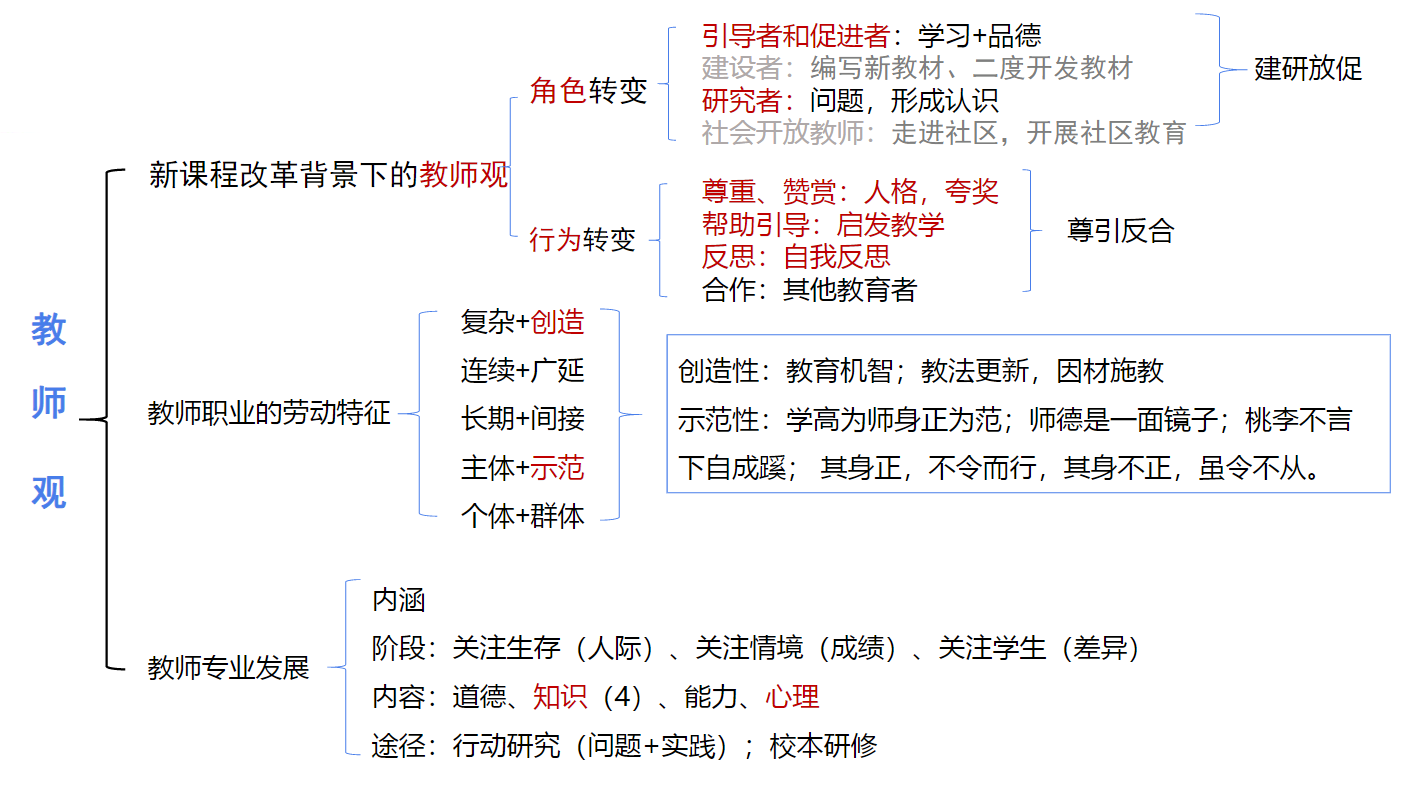 - 最后,教师的行为符合/违背了“新课改背景下教师观的要求。教师观在教师角色上认为教师是XX,在教师行为上强调教师是,材料中老师的XX行为对学生产生了XX影响。(材料概况抓关键行为)。